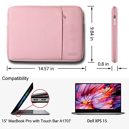 HSEOK Multifunction Water-Resistant Shockproof Laptop Case 15 Inch ★ Water-Repellent ★ Shockproof ★ Extra Soft lining ★ Extra-Durable ★ Anti-static ★ Lifetime Warranty Interior Size: 14.57" x 9.84" x 0.8" / 37cm x 25cm x 2 cm Type: Laptop Sleeve for 15 Inch Style: Terse Elegant Notebook Case 15 Inch Series Material: Waterproof polyester fabric which Certified by DuPon After Service: Life Time Warranty Usable Range: This Extra-Durable MacBook Pro 15 Inch Sleeve can easily be transported inside another bag, backpack or suitcase, It also can be carry alone for your Office Laptop or Home Tablet. Compatible With: Apple New MacBook Pro 15.4 Inch A170, 2016-2017 with Touch Bar Acer Aspire R 14 Series 14" / Aspire 1 14" Series etc Ausu VivoBook Series 15.6" / VivoBook Series 14" / VivoBook S Series 15.6" / B Series 14" etc. Dell XPS 15 Fujitsu LifeBook E746 / LifeBook E547 / LifeBook E546 HP HP Chromebook 14 Series / ProBook 640 Series / ProBook 645 / EliteBook 745 / EliteBook 840 Series / mt43 Mobile Thin Client / EliteBook 1040 G3 / ProBook 440 Lenovo Ideapad 720S (15") / YOGA 720 (15") / YOGA 730 (15") Samsung Notebook 9 15 Inch / Notebook 9 Pro 15 Inch Package Include 1 X Extra-Durable Laptop Sleeve 15 Inch 365 X Best Regards ! Weight About 7 ounce Note: This MacBook Pro 15 Inch Sleeve is water resistant but not water proof, you can use it in rain, but don't try to drop it in water.