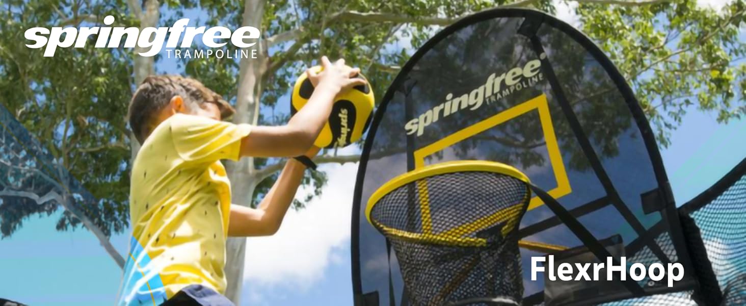 Springfree FlexrHoop Basketball Hoop Attachment for Trampolines with Ball & Pump - Soft Accessory for Outdoor Backyard Recreational Trampoline, Active Play & Jumping Fun for Kids, Adults & Family