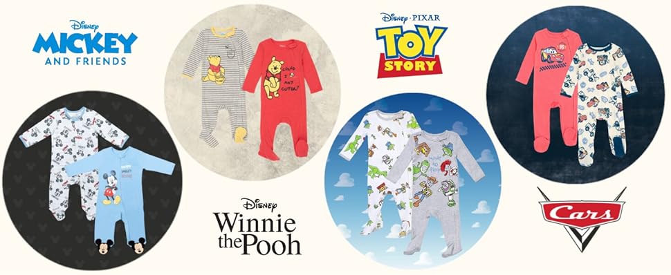 Disney Baby 2 Pack Zip Up Sleep N' Plays Newborn to Infant Sizes (Newborn - 24 Months)