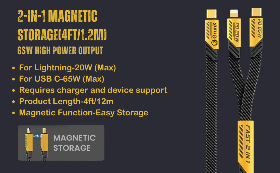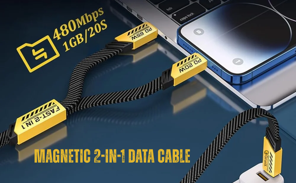 The GrunX Dailyuse 2-in-1 Fast Charging Cable delivers ultra-fast 65W charging and 480Mbps data transfer speeds, compatible with a wide range of devices including MacBook, iPhone, Samsung, and more. Featuring a durable carbon fiber nylon braided design, smart chip technology for safe charging, and a tangle-free flat cable, it’s the perfect stylish and portable solution for professionals on the go.