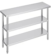 The Vevor Stainless Steel Commercial Kitchen Work Table offers a durable 24x36 inch prep surface with a 2.2-inch thick corrosion-resistant top and adjustable undershelf. Supporting up to 286 lbs, it’s designed for heavy-duty use in professional and home kitchens alike. Easy to assemble and versatile, it’s ideal for food prep, storage, and organization in any culinary environment.
