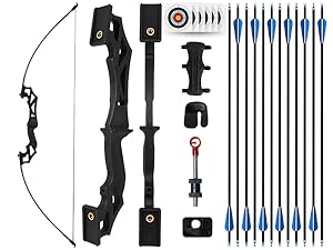 The REAWOW Recurve Bow and Arrow Set is a professional-grade, right-handed longbow featuring a durable aluminum-magnesium alloy handle and a 30-40 lbs draw weight. At 51 inches in length, it comes with 6 high-performance carbon arrows with replaceable tips, plus essential accessories like an armguard and finger tab. Perfectly suited for outdoor target practice, hunting, and competitive shooting, this lightweight 1.7 kg bow offers precision, power, and complete readiness for archery enthusiasts.