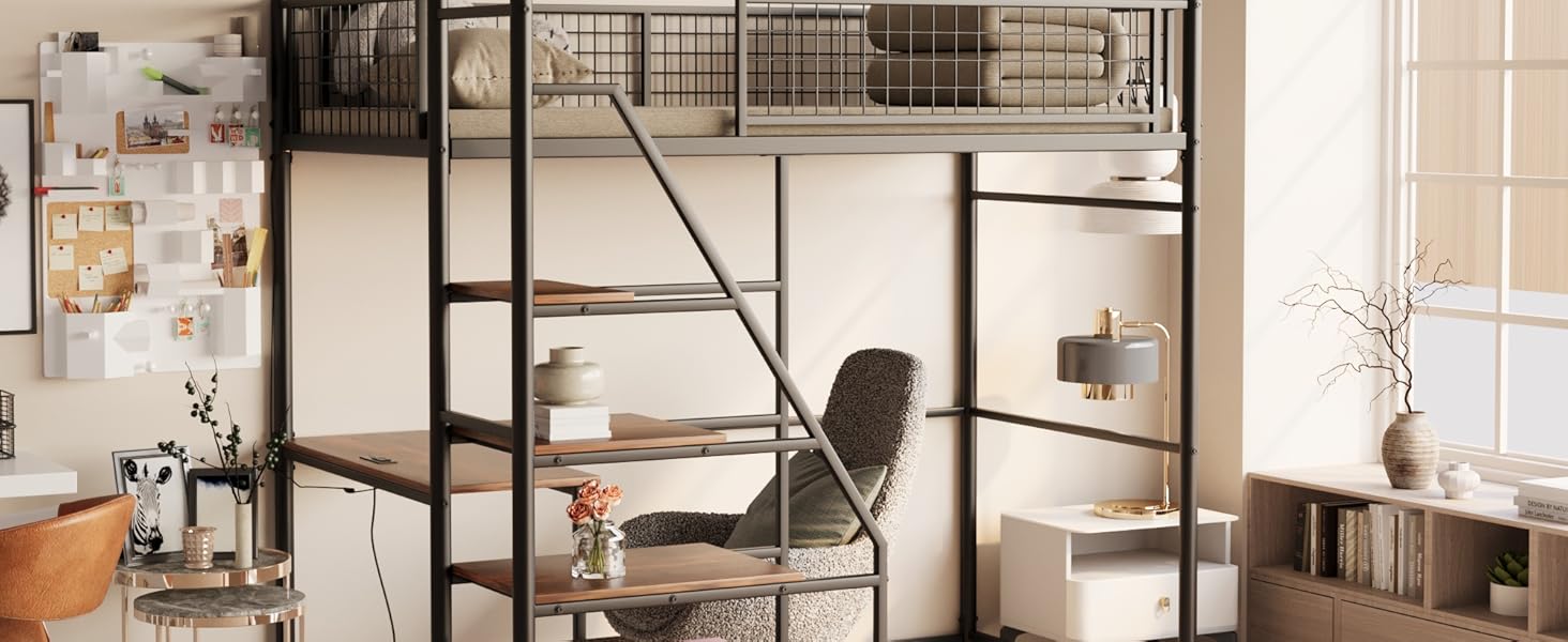 Lumisol Loft Bed With Desk Twin Size Metal Loft Bed | Desertcart Vietnam