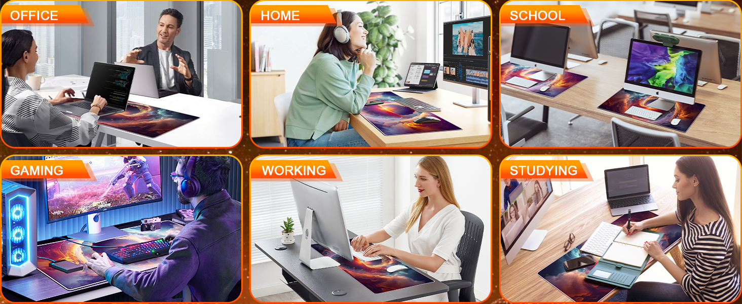 The WECOOL Gaming Mouse Pad offers a premium 23.6 x 11.8 inch smooth surface with a non-slip rubber base and 3mm thickness, designed for professional gamers and office pros seeking precision, comfort, and durability. Its large size accommodates both keyboard and mouse, while the cosmic-themed design adds a stylish touch to any setup.