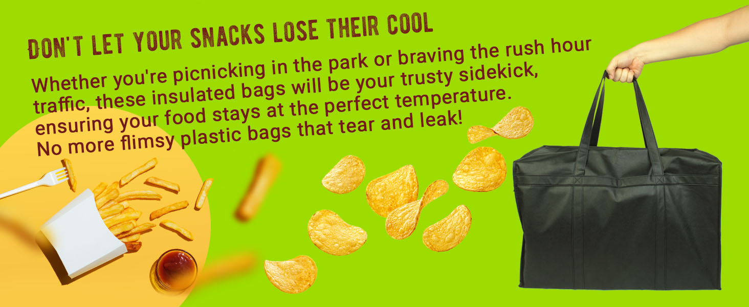 Hey there, food lovers and snack enthusiasts! If you're looking for a way to keep your food fresher than a prince on his wedding day, you need to check out these Insulated Bags. With their aluminum insulation, durable handles, and double zipper closures, these bags are like the Chuck Norris of food storage - tough as nails and ready for anything.But that's not all - these bags are more space-efficient than a clown car. You can fit more food in these bags than you ever thought possible, and the great sealing means you won't have to worry about spills or leaks. And don't even get me started on the temperature control - these bags keep your food as hot or cold as you want it, so you can enjoy your snacks the way they were meant to be enjoyed.We've been using these bags for everything from grocery shopping to road trips, and let's just say we're impressed with their versatility. It's like having a food storage solution that's as flexible as a yoga instructor - and that's saying something. They're tough, versatile, and ready for anything - just like you (and Chuck Norris of course).