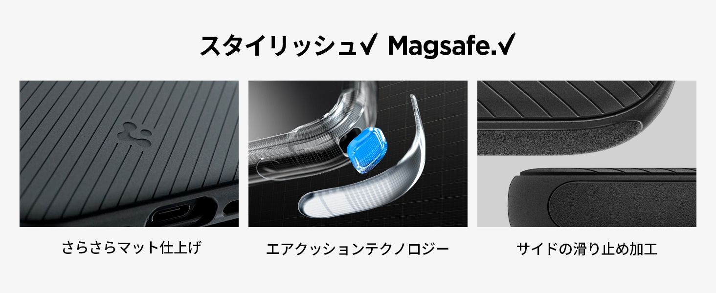 MagSafeに対応していながらもこれだけのクオリティ。サイドには滑り止めもついており、落下の心配もなく使用させていただいております。