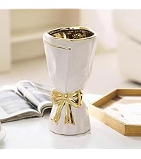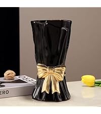 The WLGRANJIA Black and Gold Bow Ceramic Vase is a 9.65-inch hand-crafted porcelain piece featuring a glossy, textured glaze and a unique bow shape. Designed for versatility, it holds fresh, dried, or faux flowers with water-safe functionality. Its high temperature resistance and anti-slip base ensure durability, while the elegant black and gold finish complements a wide range of decor styles from boho to modern farmhouse. Available in eight colors and backed by a one-year warranty, it’s a stylish, gift-ready accent for any space.