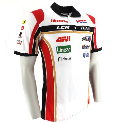 New for 2014 this LCR Honda adults polo-shirt is part of our official merchandise collection.This LCR Honda polo features the team logos and sponsors printed across the front, sleeves and rear then finished with the black banding around the sleeve.Printed onto the rear is the teams logo, finished with the LCR colours in a contrasting style, this excellent polo is a superb piece of team wear clothing to support the LCR Honda team this season.