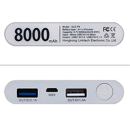 iPowers - make your wonderfulness continue. Features 1. The capacity of 8000mAh supports all popular mobile phones and electronic devices 2. Built-in lithium-ion battery for on-the-go rapid charging 3. Dual USB 1.0A + 2.1A, speedy and complete charge your 2 devices simultaneously 4. Lightweight and portable - perfect for mobile professionals 5. Built-in microchips - extend the battery life of any Apple product that uses proprietary 8-pin lightning connector or most micro USB enabled mobile devices Specifications Color: Silver Material: Aluminum body and A+ Lithium Polymer battery cells Input: DC 5V-1000 mAh Output: DC 5V-5.5V-1000 mAh Capacity: 8000mAh Product Dimensions: 115mm*71.6mm*14.7mm Package Dimensions: 19cm*12.9cm*3cm (H x W x D) Operate Temp: 10-60 degress Celsius Store Temp: -10-45 degress Celsius Range of occasions: Parties, BBQs, and outdoor activities like camping, mountain climbing, and picnics. Application of models: Apple iPad mini, iPhone 6s,6,6 plus 5S,5,4s ect; iPod touch 5, iPod nano 7 and micro USB enabled smartphones, tablets and MP3 players, or any other 5V USB-charged devices. Note: The package comes with a micro usb data cable for micro usb devices such as Android smartphones and windows phones.For Apple products,please use with the Apple's original data cable. Package includes: 1 X iPowers 8000mAh Portable USB Power Bank Charger 1 X Micro USB Cable 1 X User Manual Warranty: 12 months worry-free product guarantee,if there is anything wrong with the battery,just feel free to contact us and we will try our best to resolve the issue,thank you for your support!