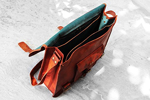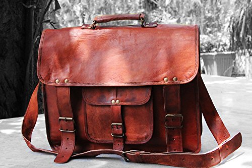 Ooze with confidence by flaunting this exquisite leather messenger bag, which is elegant enough for even the most sophisticated workplace. This is a semi-rigid large sized bag capable of taking a lot of items, like mobile, iPod, Blackberry or wallet/purse. It has a huge main compartment which is perfect for carrying a laptop, as well as books and clothes. The brown colored cross-body or shoulder strap measures 56 inches. 3/4th flap with 2 buckle closure strap. Single front small pocket covered by a flap and buckle in the front. Rugged reinforced leather handle to wear by hand on top of the bag. Three compartments inside - one main inside chamber for laptop and 2 side pockets for documents and other accessories. Two inside zipper pocket for the safety of the valuables, important papers and documents. Note- 1) The colors of the product may vary from the actual product depending upon your screen resolution, contrast, brightness, hue and other computer settings, and reproduction limitations of the photos. 2) The dimensions may differ due to the handmade nature of the product.