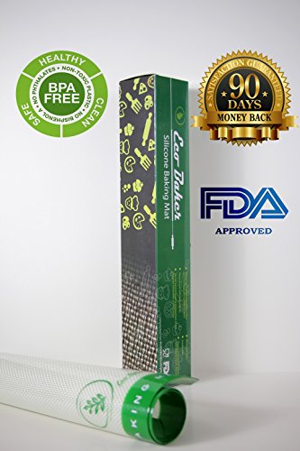 Be ECOnomical - Say goodbye to spending your hard earned money on oils, grease, sprays, foil and parchment paper. Nothing sticks the Eco Baker. This puts non-stick pans to shame. Clean up is a breeze, simply wipe using warm and soapy water and let it air dry. Use it up to 2,000 times. Like a Glove - Designed for the half sheet baking pan - 27cm x 42cm (10.6in X 16.5in) This mat was precisely molded to fit your baking pan like no other. Super Healthy - Bake Anything Without The Use of Fatty Oils, Lards, Grease or Non-Stick Sprays. Bake Pure! Super Safe - American (FDA) and European (LFGB) Approved Silicone Baking Material so you can rest assured that not funky weird smells will creep into your baking delight UNMATCHED CUSTOMER ASSURANCE - With the Greatest Guarantee Ever - THE LIFETIME WARRANTY! We challenge you to out-bake your Eco Baker. If your ever in need of a replacement, give us a shout and will send a new mat out to you at no additional charge, we'll even cover the shipping!